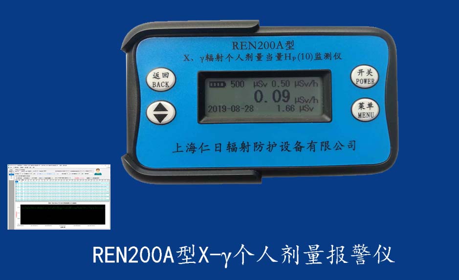 REN200A X、γ輻射個人劑量當量HP(10)監測儀REN200A型X、γ輻射個人劑量當量HP(10)監測儀(簡稱:個人劑量報警儀)內置高靈敏度蓋格計數管為探測器,主要用來監測各種放射性工作場所的X、γ以及硬β射線的輻射,具有響應快,測量范圍寬的特點。能顯示工作場所的劑量當量率和累積劑量,更換電池時,日期及累積數據能永久保存?蛇x配RenRiPersonal個人劑量管理軟件,該軟件可存儲多個人的歷史數據,能記錄日累積、月累積、年累積、輻照時長、計算平均劑量率、扣除或不扣除本底輻射,且以文字和圖譜的方式展現數據。廣泛應用于核電站、加速器、鋼鐵、化工、同位素應用、工業X、γ無損探傷、放射醫療、鈷源治療、γ輻照、放射性實驗室、核設施周圍環境監測等領域
